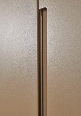 The combination of harmonious colour schemes and an inviting wall design creates an atmosphere that radiates peace and security. A special highlight is the Newly developed, milled handle strip - a design detail that blends seamlessly into the overall picture and combines precision craftsmanship with functional power. The design is rounded off by Glass wall units in dark bronze, matching bronze glass and discreet lighting. The result is a kitchen that combines warmth, transparency and style. modern, timeless and with a tangible soul.